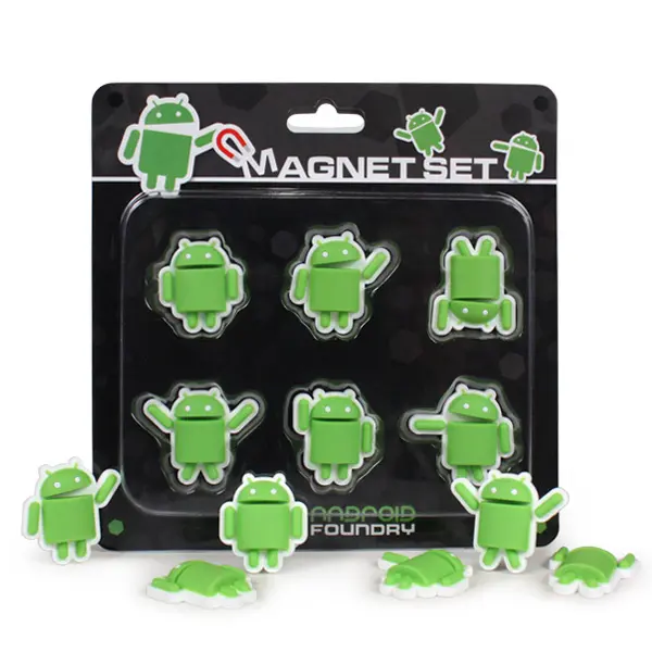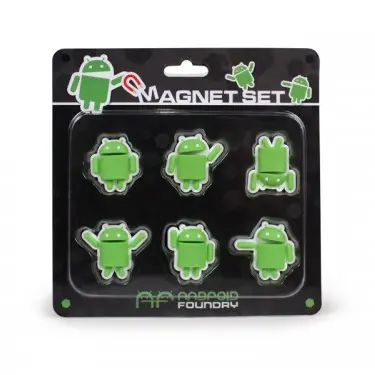 The Android Mini Green Magnet Set is a package of six mini Bugdroid fridge magnets in different poses.