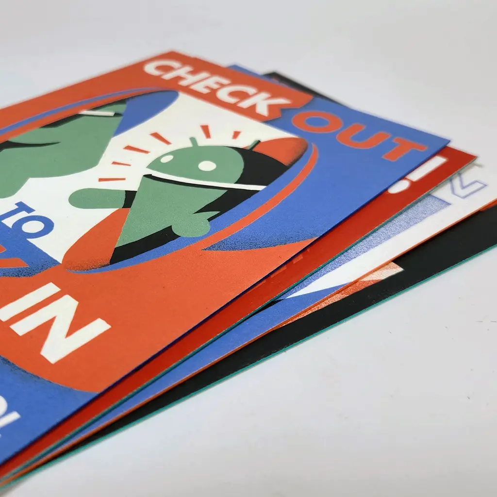 Set 3 of the mini prints includes four Android Progress posters in miniature greeting card-like sizes.