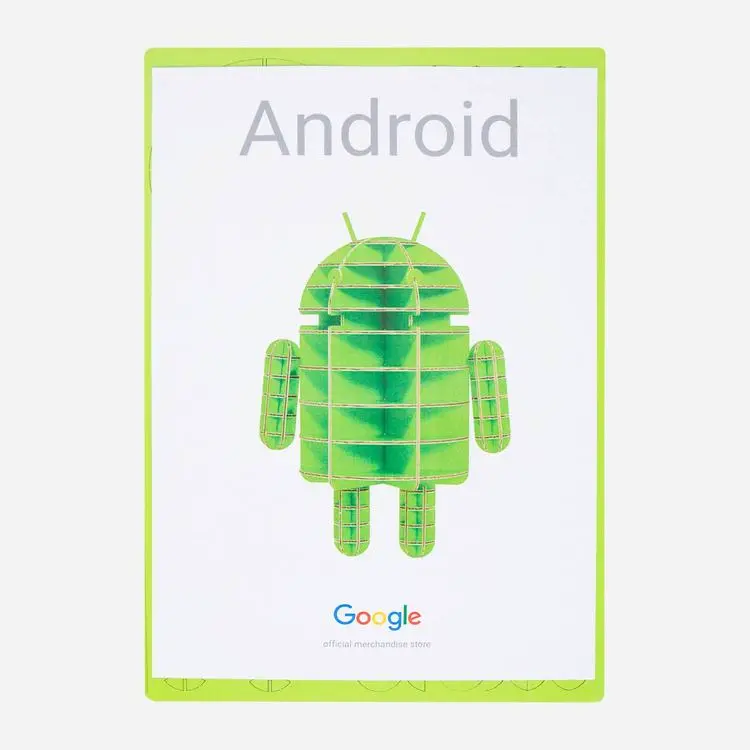 Android Cardboard Sculpture is a cardboard statue of the classic Bugdroid. It is built by assembling pieces from three sheets of cardboard.
