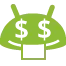The Bubble Bot Rug medium-sized circle rug of a dark blue Bugdroid behind light blue bubbles. There were two large (6") variants made, one of them was for Andrew Bell personally and one was sold to the public for $550.