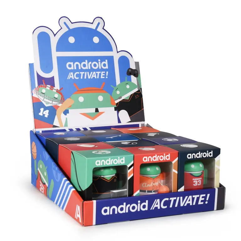The Android Activate! Set contains Bugdroids representing different sports. Some figuries have unique expressions. The Soccer figure has eyebrows and the Boxing figure has a missing tooth.