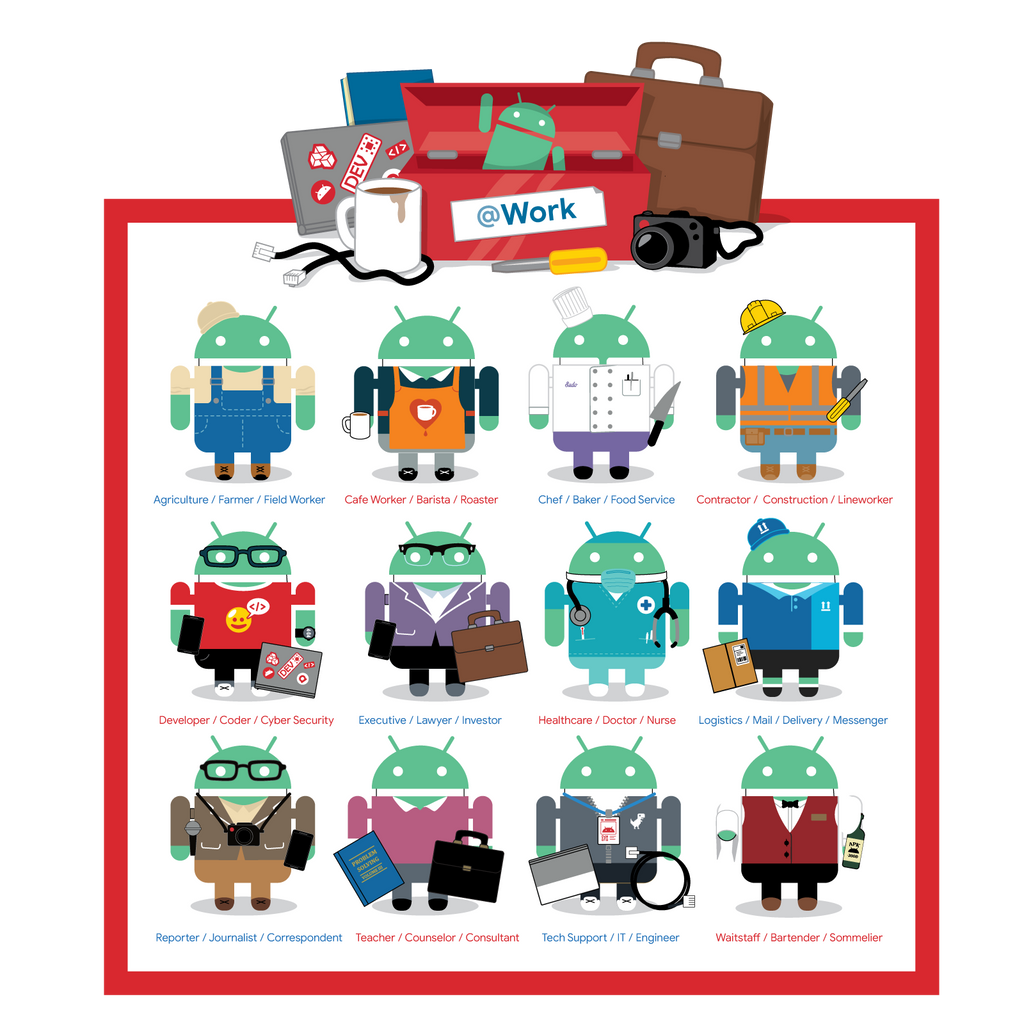 Whether you're in an office, on video calls at home, searching for a job or even diving into a new career- it’s hard work! Celebrate the industrious, resilient and diverse workforce the world over with the fun new @Work set of 12 different career-themed Android mini collectibles.