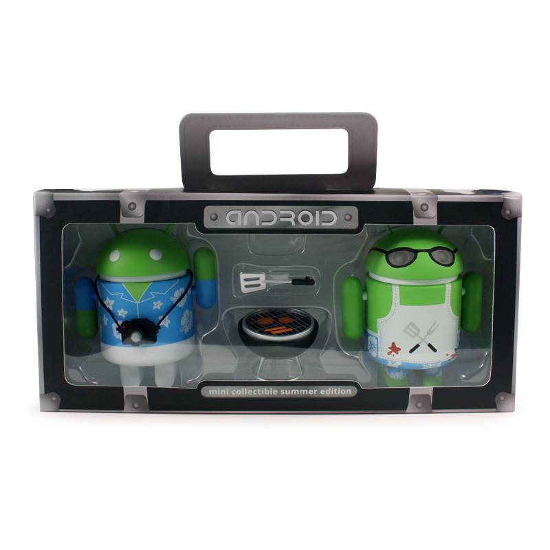 The blue BBQ Set contains two Bugdroids out for a day of grilling. Like the one released in July 2012, one is a griller and the other is a photographer. Their accessories are a splatula, camera, and a grill.