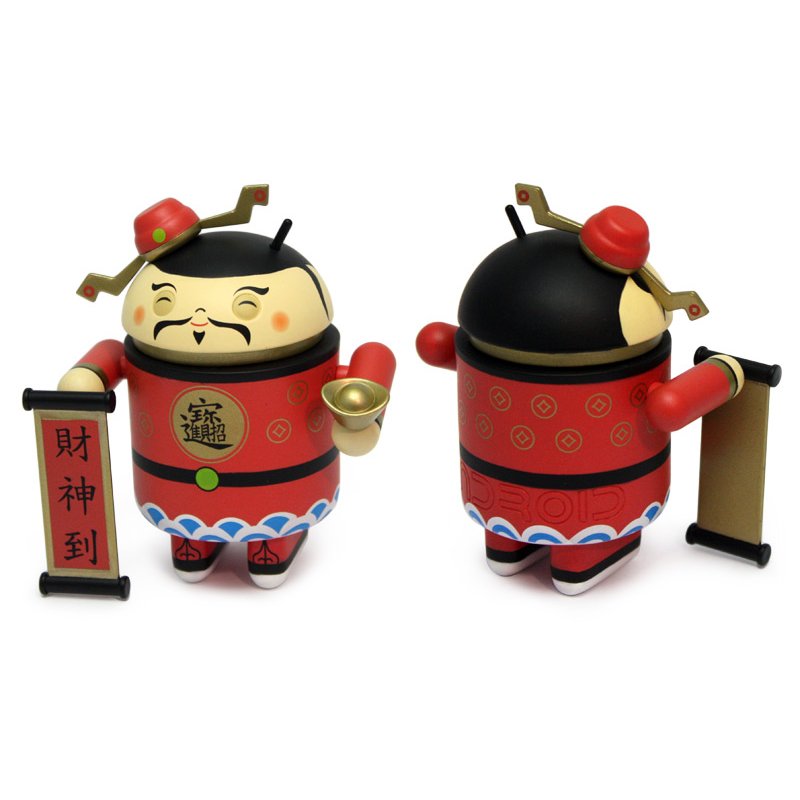 The Cai Shen figure is based off of the Chinese God of Wealth, his accessories are a scroll and golden bowl.