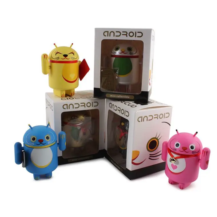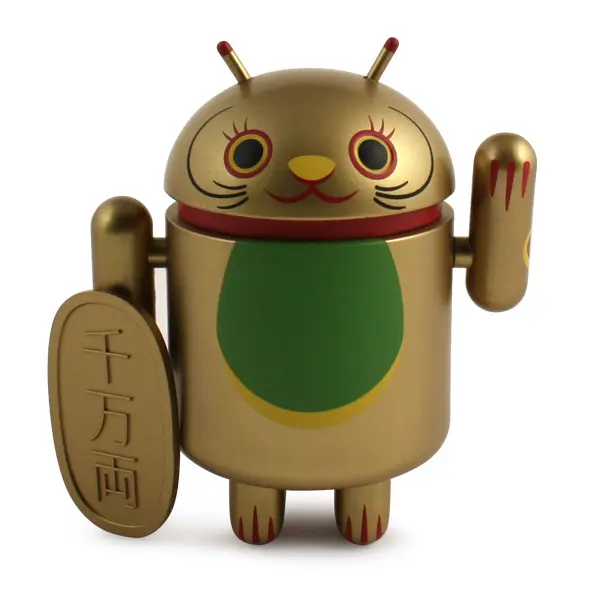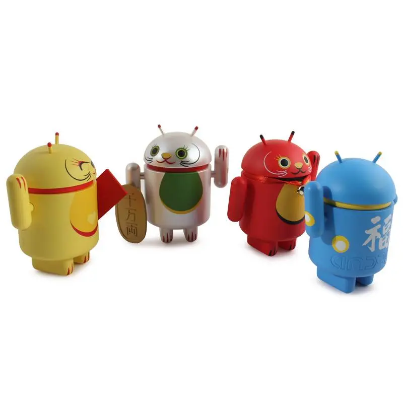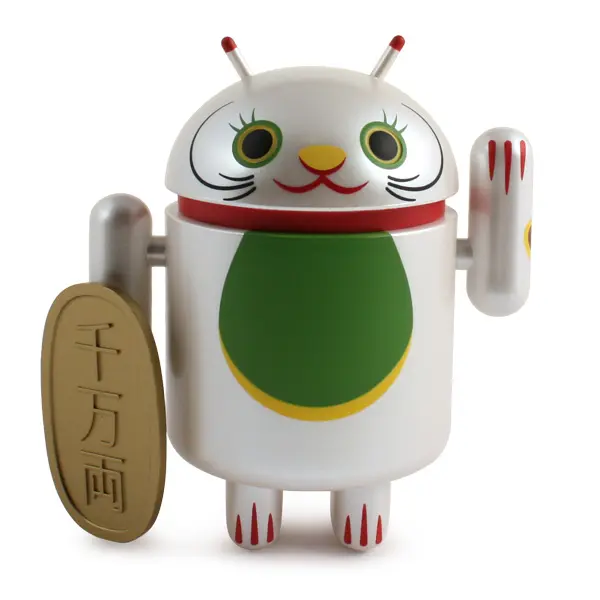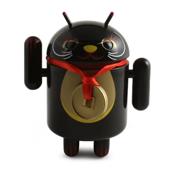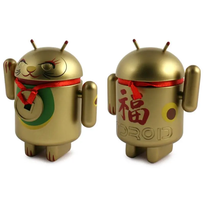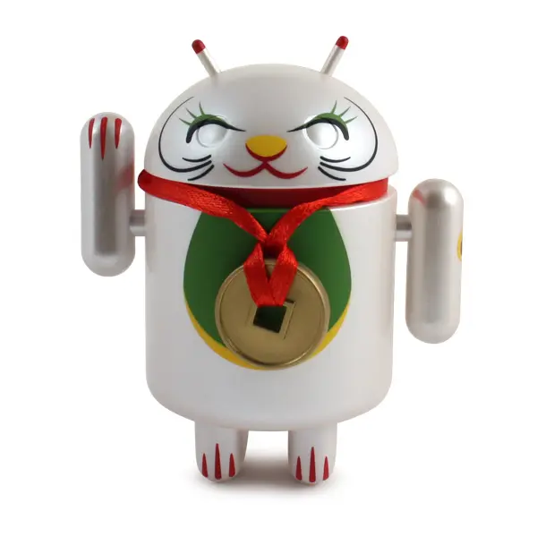 Introducing the Android mini collectibles Lucky Cat Series! Designed by artist Shane Jessup, these adorable Androids welcome wealth, prosperity and protection into your home or business. Each window-boxed Lucky Cat Android features an accessory and a swinging arm.