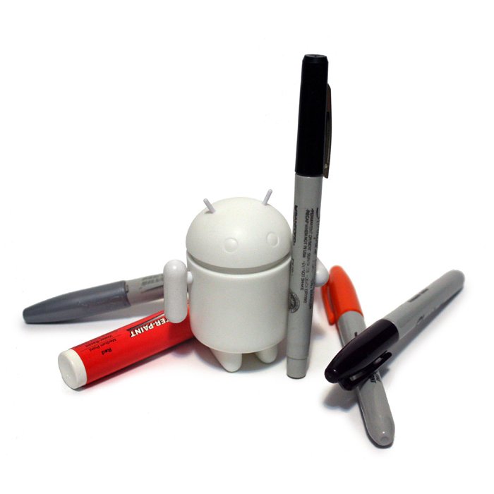 The Standard D.I.Y. figure is a white Bugdroid that is a blank customizable figurine.