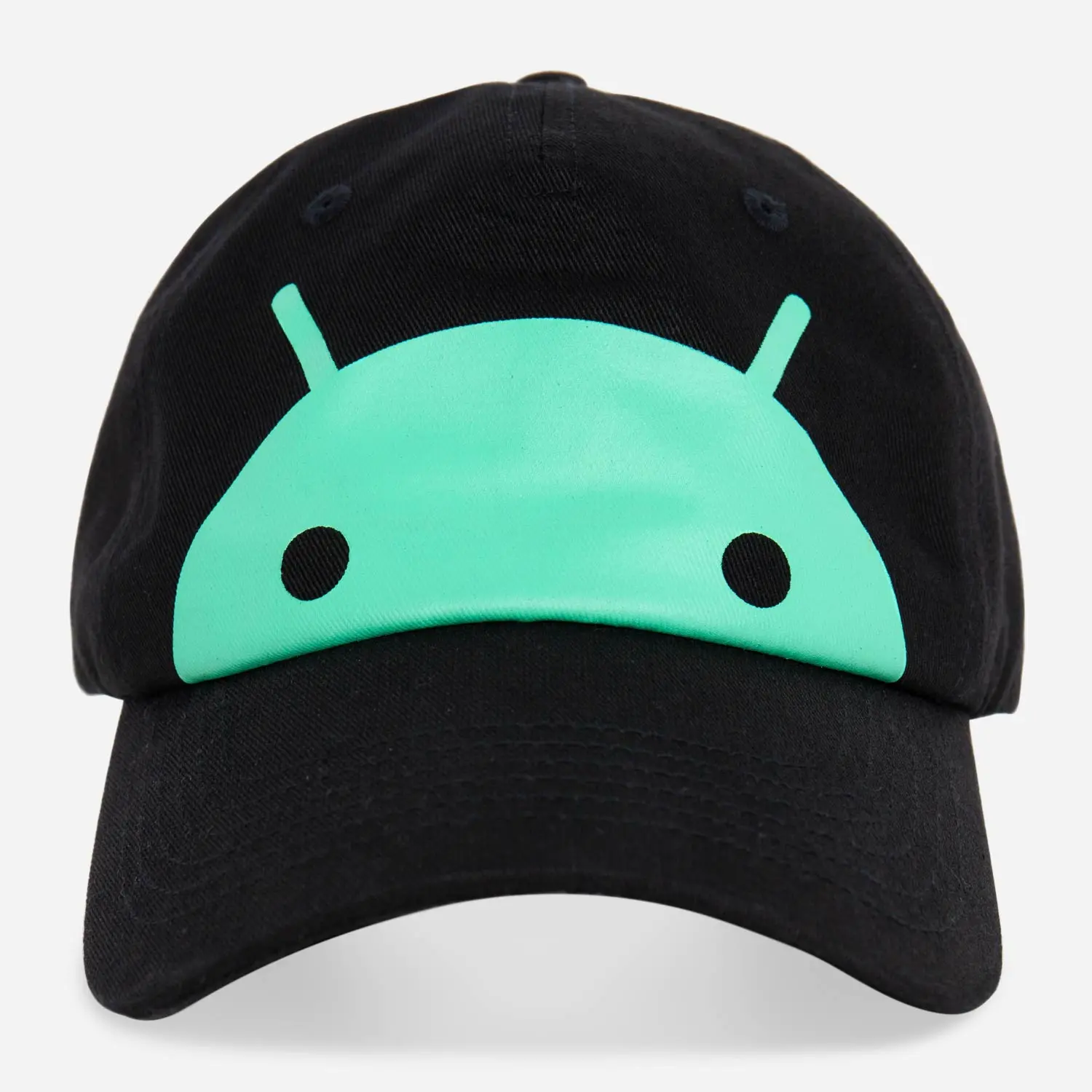 is a black cap with a large Iconic-styled Bugdroid head, stretched.