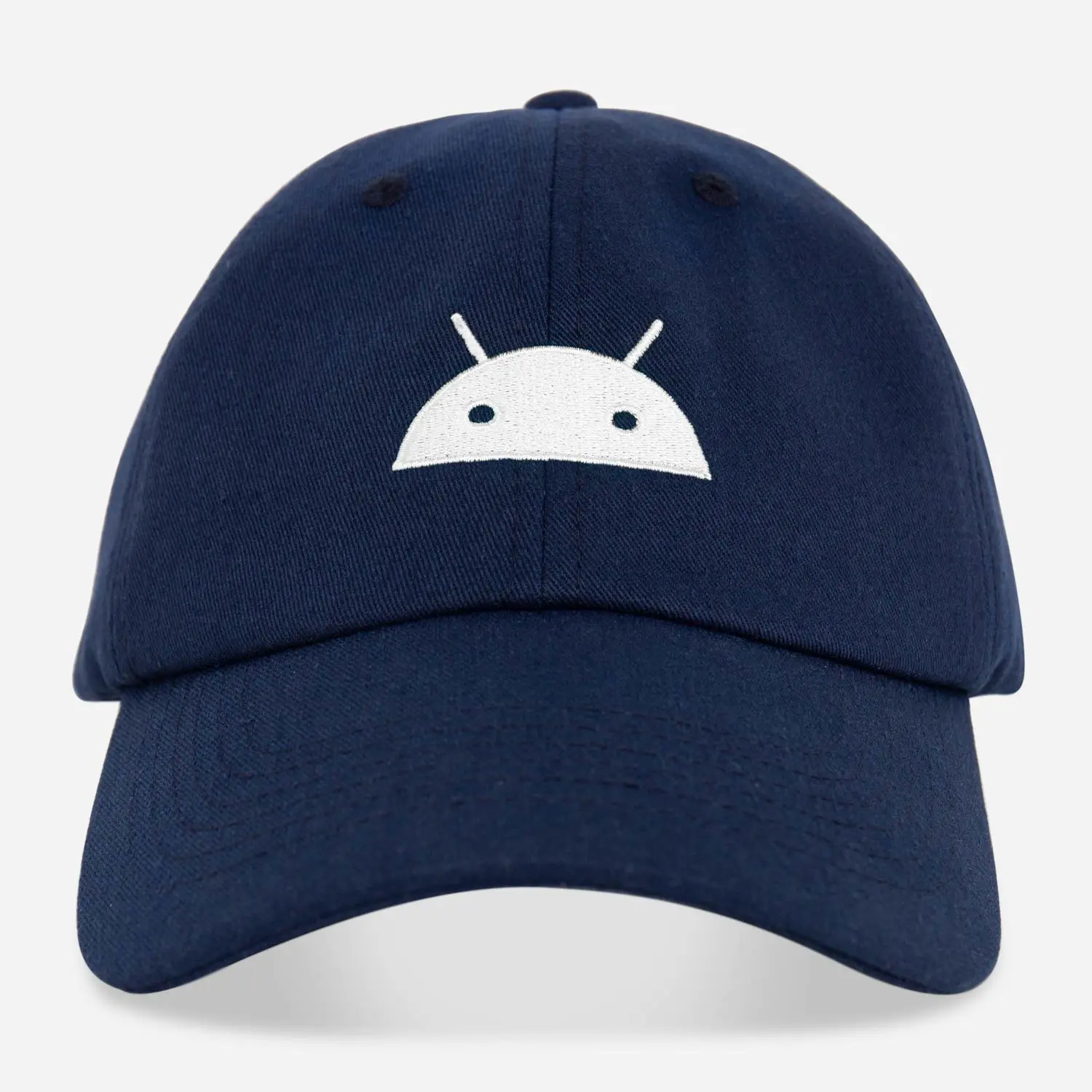 Android Iconic Hat White is variation of Android Iconic Hat Green. A navy cap with a green Iconic-styled Bugdroid head on it.
