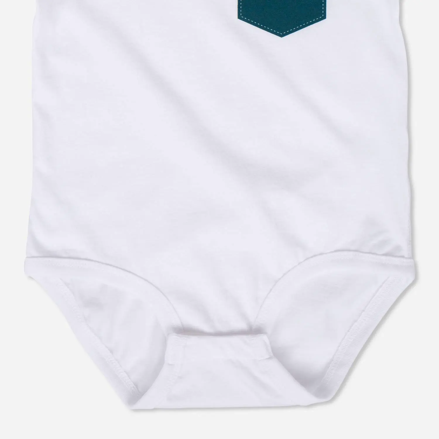 The Android Pocket Onesie White is a small variation of the Android Pocket Toddler Tee White. A white shirt with a navy blue pocket with an Iconic-styled Bugdroid head peeking out of it.
