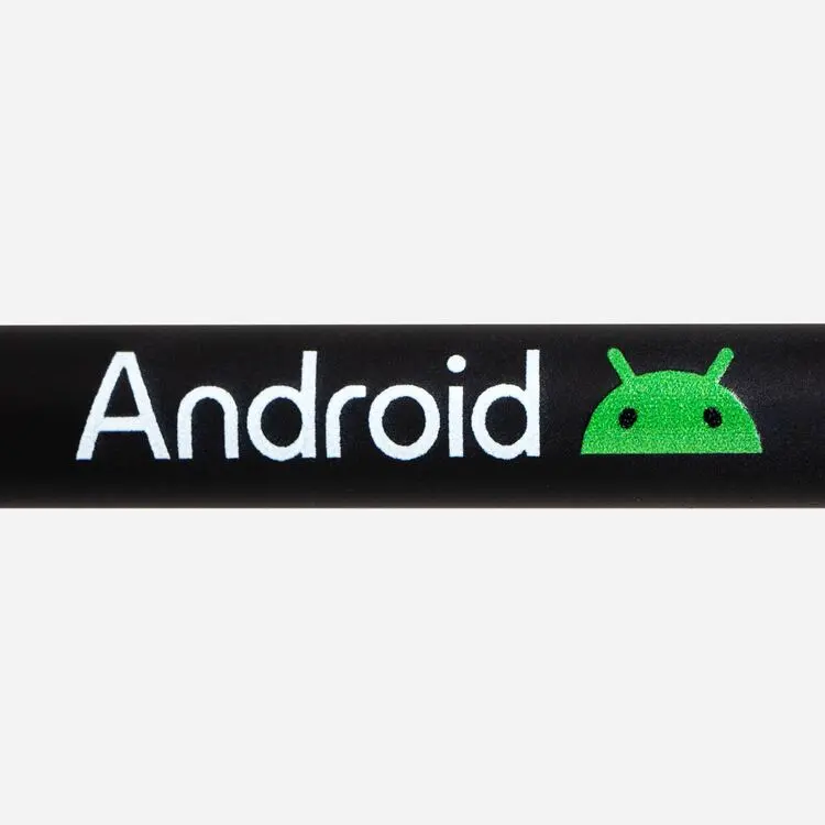 The Android Black Pen has the new Bugdroid head on it along with the new font as well. This is another kaco pen.
