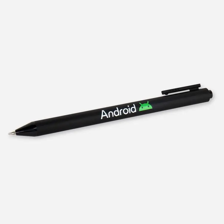 Add a delightful addition to your writing station with a clickable fine point pen. Featuring a soft touch matte finish and a bold Android logo.