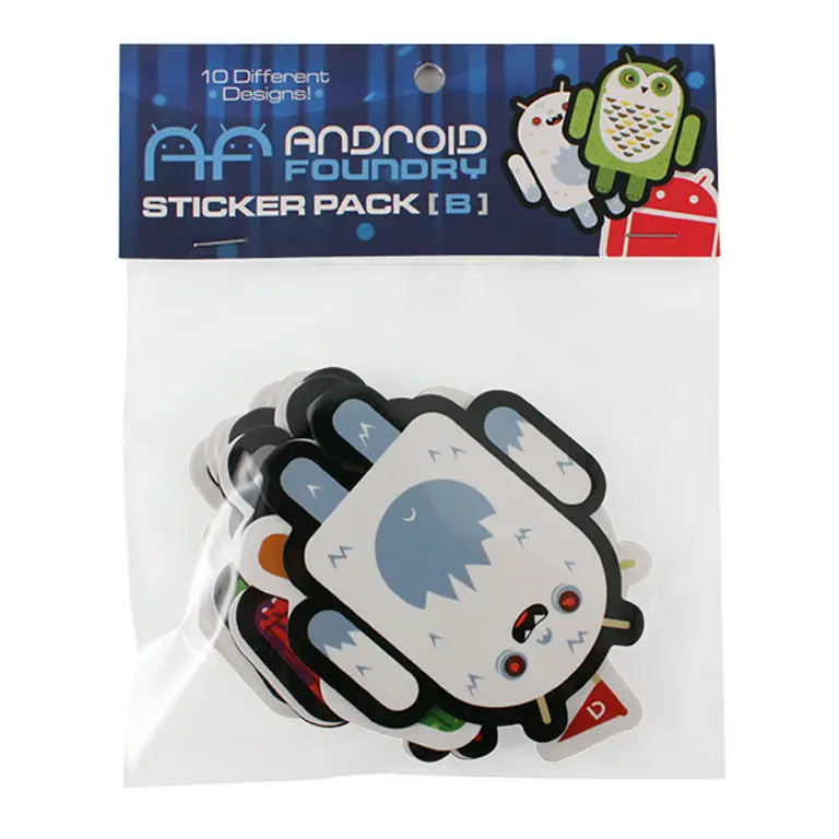 The Android Sticker Pack B is a pack of 10 indvidual stickers with designs borrowed from Series 3, Series 4, and the Big Box Series of the figurines.
