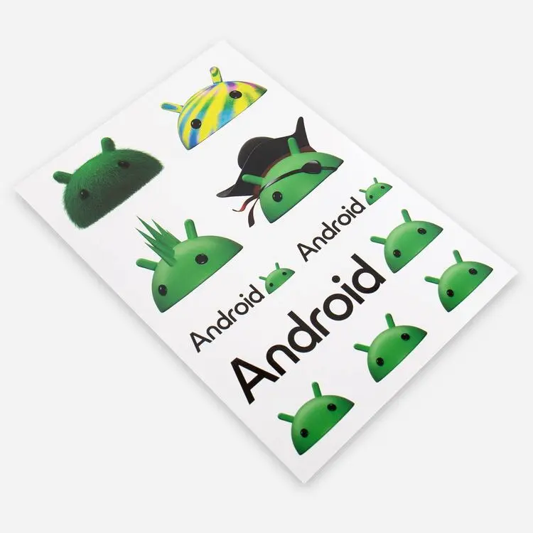 Customize your belongings with these playful Android stickers in various sizes and styles.